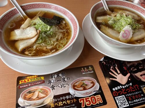 創業66周年イベント「超創業祭」 幸楽苑 / クラッシク中華そば食べ比べセット 休日に妻とラーメンを食べに幸楽苑に行ってきました。 運転中、ラーメンが食べたいと思ったその時に、偶然目に入ったのが幸楽苑。 特にメニューを決めて入った訳ではないのですが…