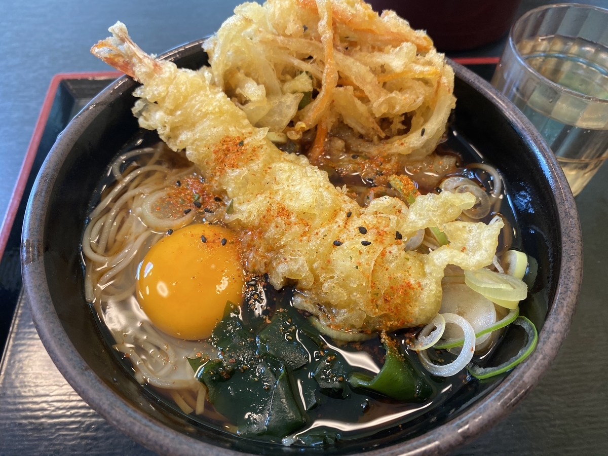 この日は、天玉そばに、海老天をトッピング。