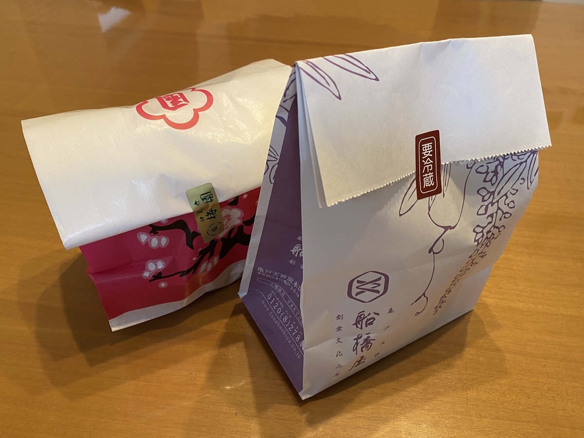 今回は、東京で有名な船橋屋の豆かん(税込み500円)と浅草梅園の豆かん(税込み540円)をチョイス。