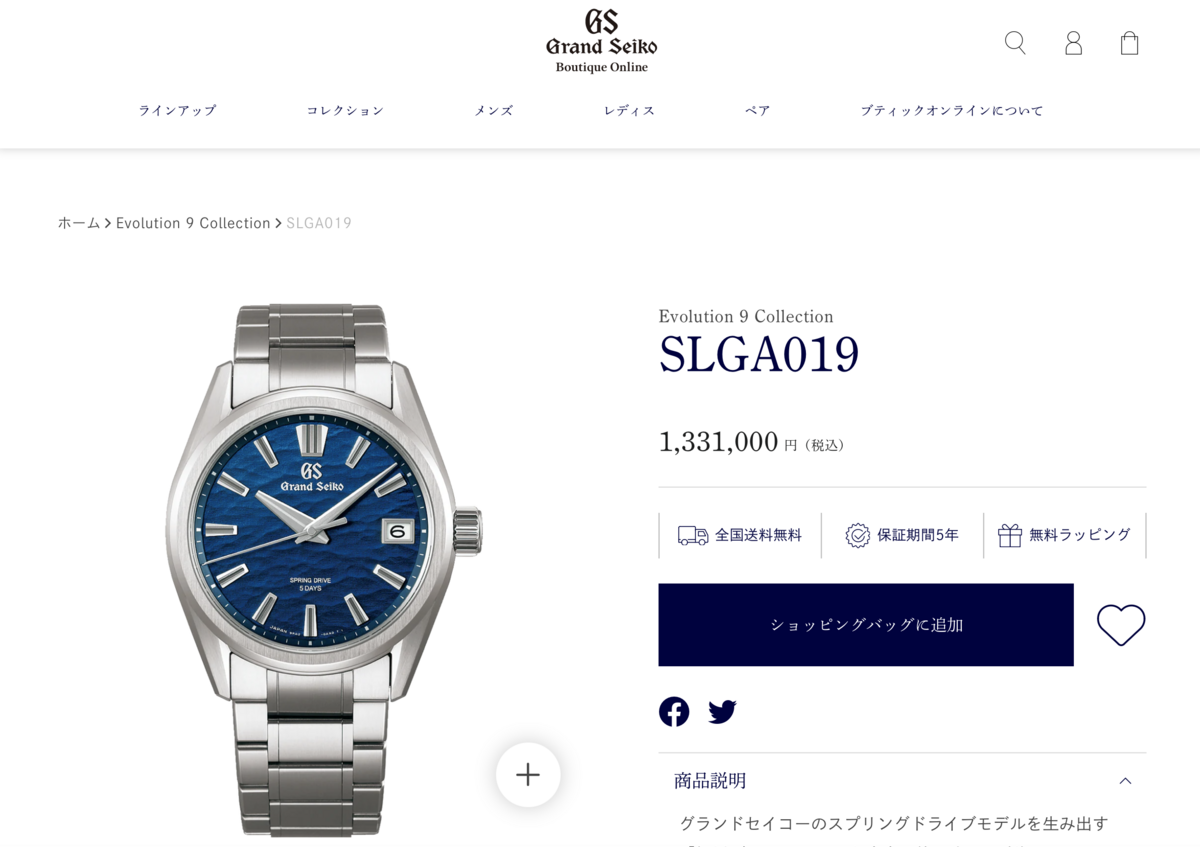 いつの間にか、Grand SeikoのEvolution 9 Collectionに、SLGA019という時計がラインナップされていました。